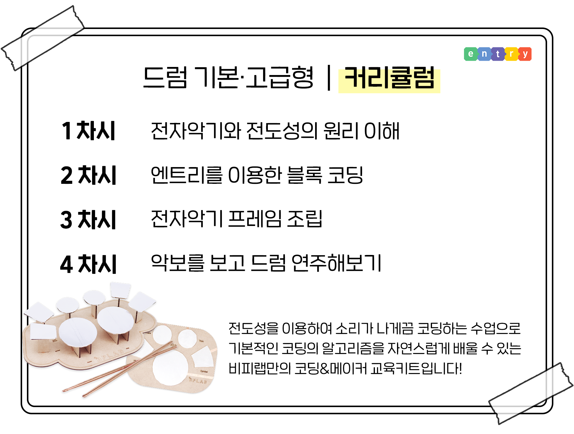 ②블록코딩을 완성하고, 전자드럼 연주하기